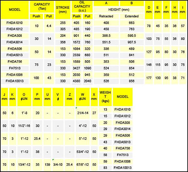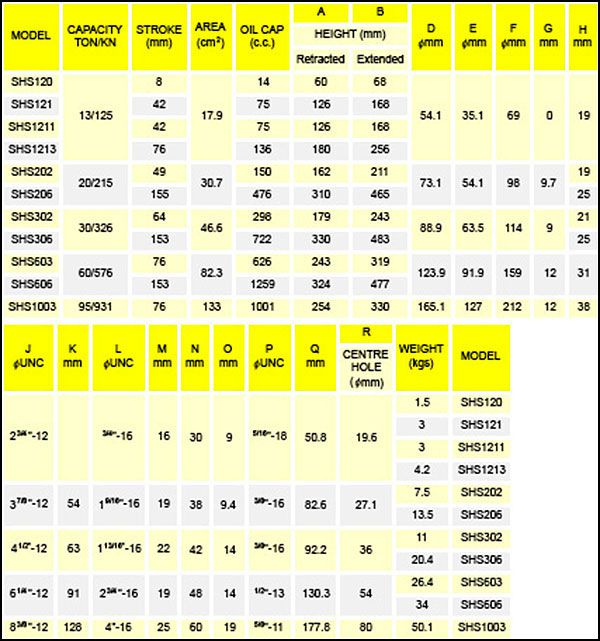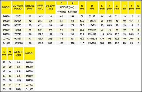 - Solid plunger-design hydraulic cylinders in 5,10, 25 and 50 tonne ratings.
